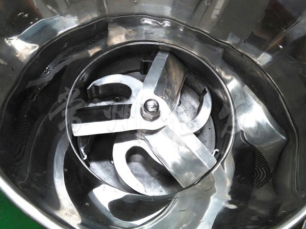 本機是通過一組旋轉(zhuǎn)碾刀,將前道工序制成的濕材注入環(huán)碾刀的不銹鋼篩筒篩孔中,從而制成圓柱狀的濕顆粒,供下道工序拋丸使用。本設(shè)備可通過更換不銹鋼篩筒來取得不同大小的顆粒。