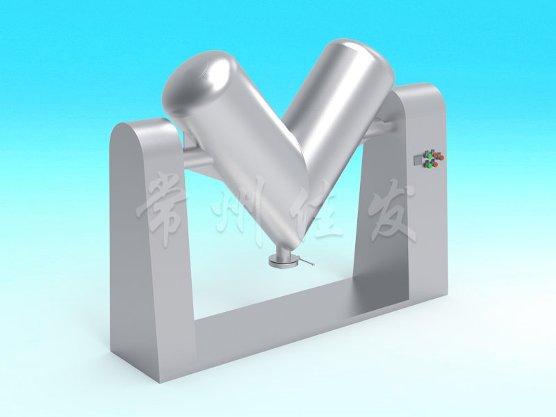 該機(jī)通過機(jī)械傳動,使不對稱的V型圓柱體內(nèi)的物料做往復(fù)翻動,達(dá)到均勻混合之目的。